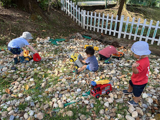 Charlie, Hugo ,Romy and Rowan enjoying using the diggers to pick up the stones!