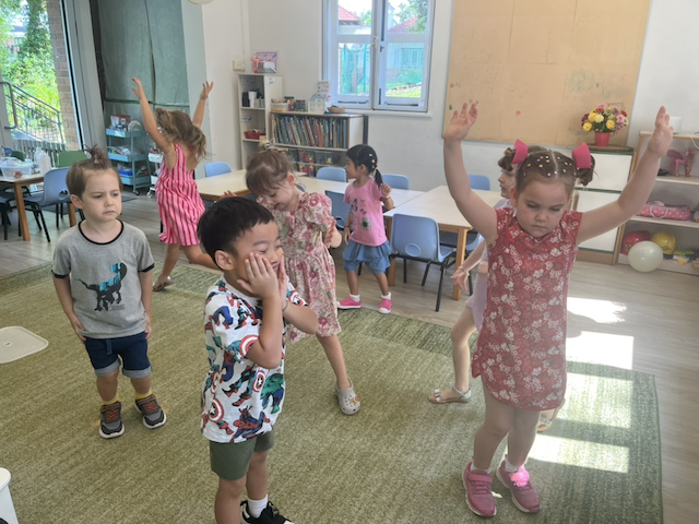 Busy bee having fun dancing to the party musics and playing the statue game.