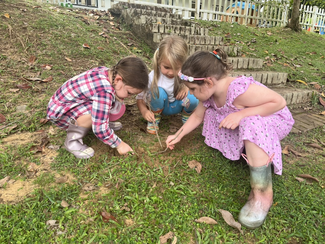 Vivi, Izzy and Paige digging the ground to make a trap.