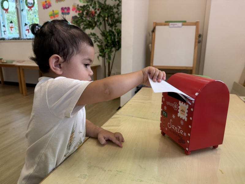 Having fun at Santa’s workshop with boxes, cans and ribbons!