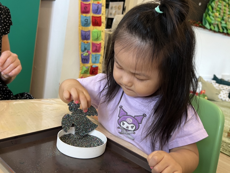 Annie decorating her ornament with glitter!
