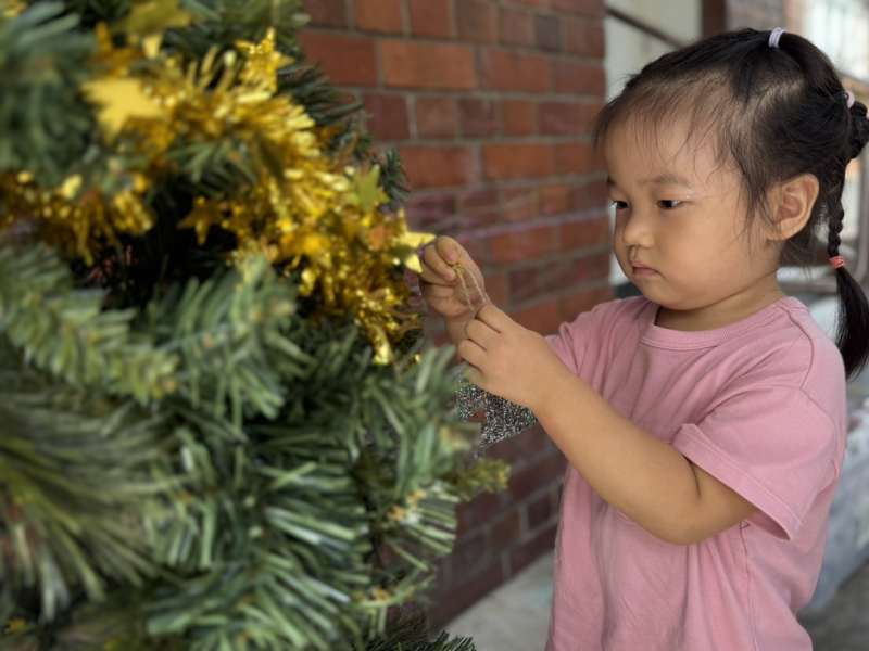Imaan is working on her Christmas craft!
