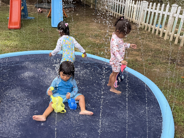 Sara, Lulu and Imaan enjoying the sprinklers!