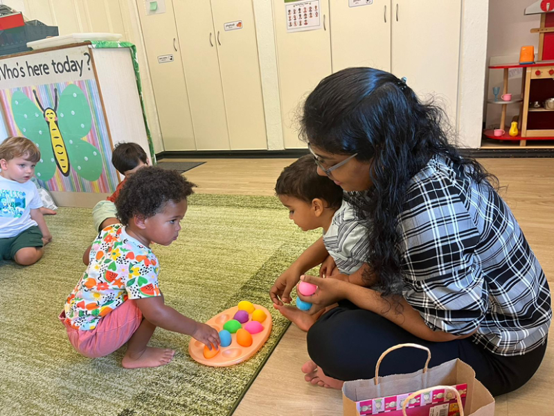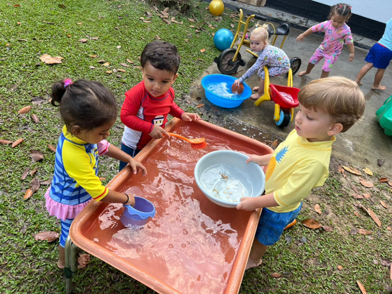 Kavi, Imaan and Leo enjoying the water tray!