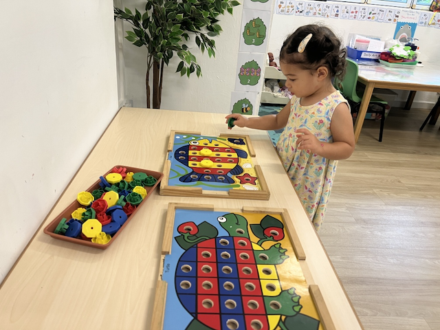 Alba enjoying the peg board!