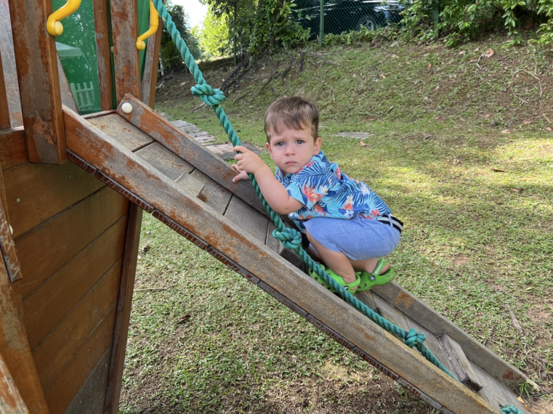 Luca climbing up the pirate ship!