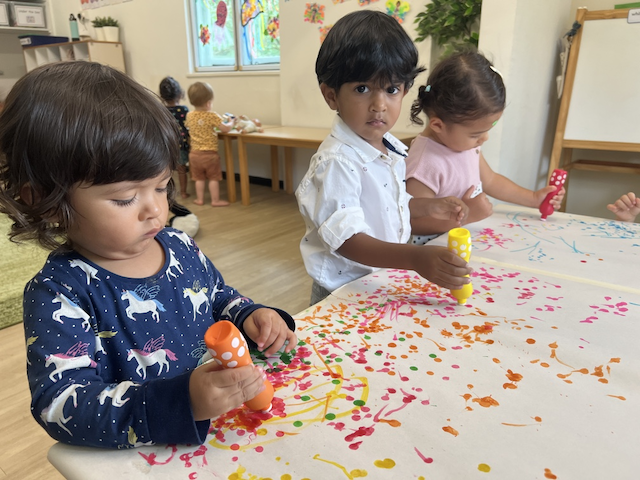 Lulu, Aarav and Alba enjoying the dot paint!