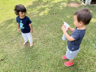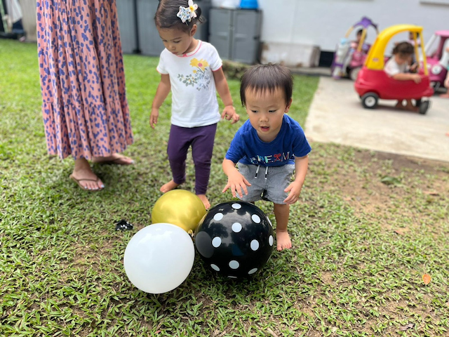 Nate and Alba playing with balloons in the garden!