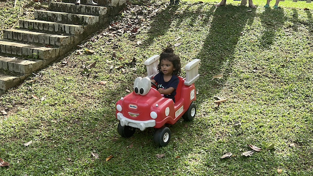 Sara going for a ride down the hill!